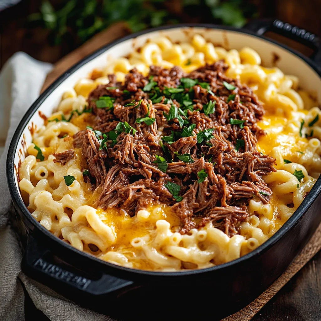 So grab your apron and get ready to create a hearty Shredded Beef Macaroni and Cheese that will leave everyone asking for seconds! Perfect for cold evenings or casual gatherings, this dish promises satisfaction in every bite.