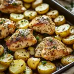 5. Bake for 30-35 minutes until the chicken reaches an internal temperature of 165°F (74°C) and potatoes are fork-tender.