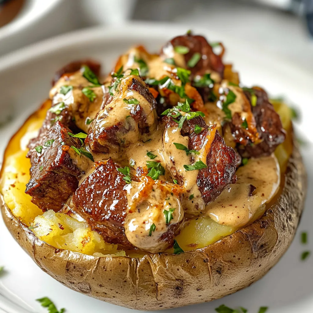 If you’re looking for a comforting dish that brings together rich flavors and satisfying textures, the Loaded Baked Potato with Steak Bites is your answer. This delightful recipe combines creamy baked potatoes with tender steak bites, topped off with ooey-gooey cheese and your favorite garnishes. Perfect for a family dinner or a cozy night in, this dish never fails to impress. The combination of crispy skin and fluffy interior of the potatoes pairs perfectly with the juicy steak bites that are seasoned to perfection.